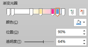 3、根据需要,在第三个游标右侧单击标尺继续加入新的游标并设置不同的颜色和透明度,打造出五彩缤纷但又柔和不刺眼(透明度和背景白色混合作用)的渐变色来