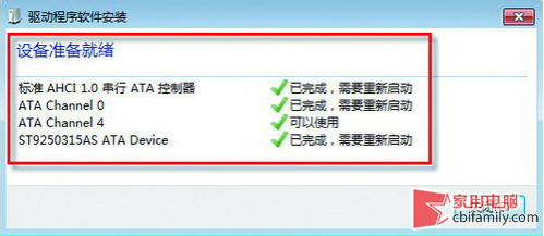 安装完磁盘驱动后,系统会提示正在安装设备驱动,大约过1分钟左右,会弹出“设备准备就绪”的提示窗口(图4),点击“关闭”按钮重新启动系统即可。