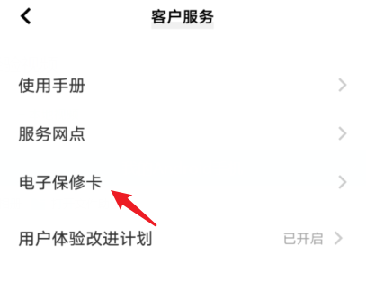 点击电子保修卡的选项即可查看。