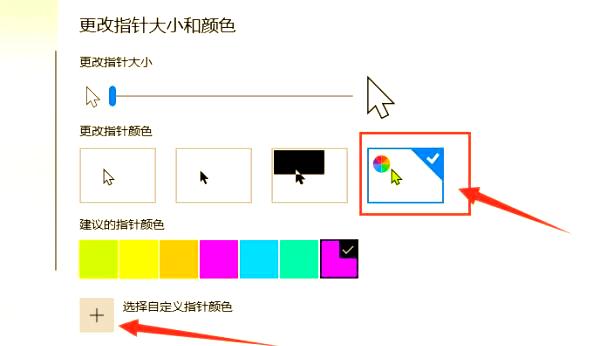 - 进入更改颜色界面后,选择最右侧的彩色光标,即可自定义鼠标颜色。