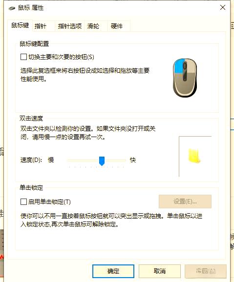 鼠标属性中还有许多其他有趣的内容。例如,您可以尝试交换鼠标的左右键功能,这样即使其中一个键出现问题,您也可以使用另一个键进行替换,从而继续使用鼠标。此外,双击速度的设置也很有讲究,默认的速度已经足够我们日常使用,而且轻易不要修改,以避免可能出现的连锁反应。