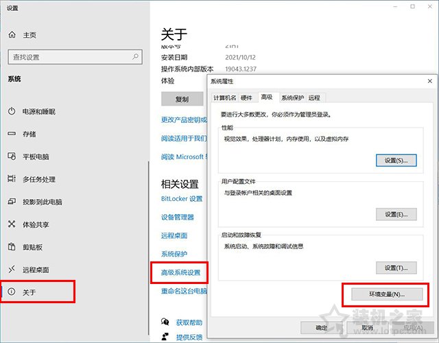 具体方法:在桌面上右键点击“此电脑”选择“属性”,点击“关于”选项卡,在右侧窗口下拉,点击“高级系统设置”,在系统属性窗口中,我们在“高级”选项卡,再点击“环境变量”按钮。