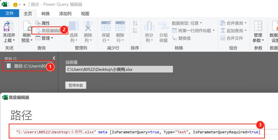"C:\Users\80522\Desktop\小爽鸭xlsx" meta [IsParameterQuery=true, Type="Text", IsParameterQueryRequired=true]