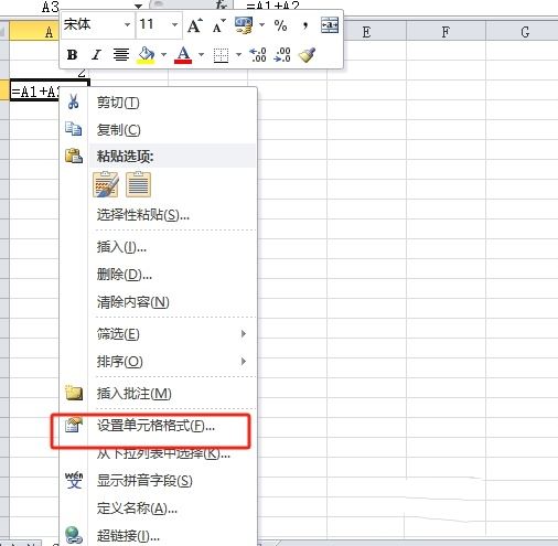 3、这时就需要用户选中含有公式的单元格,并用鼠标右键点击,在弹出来的菜单中,用户选择其中的设置单元格格式选项。