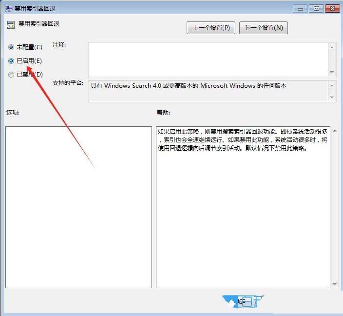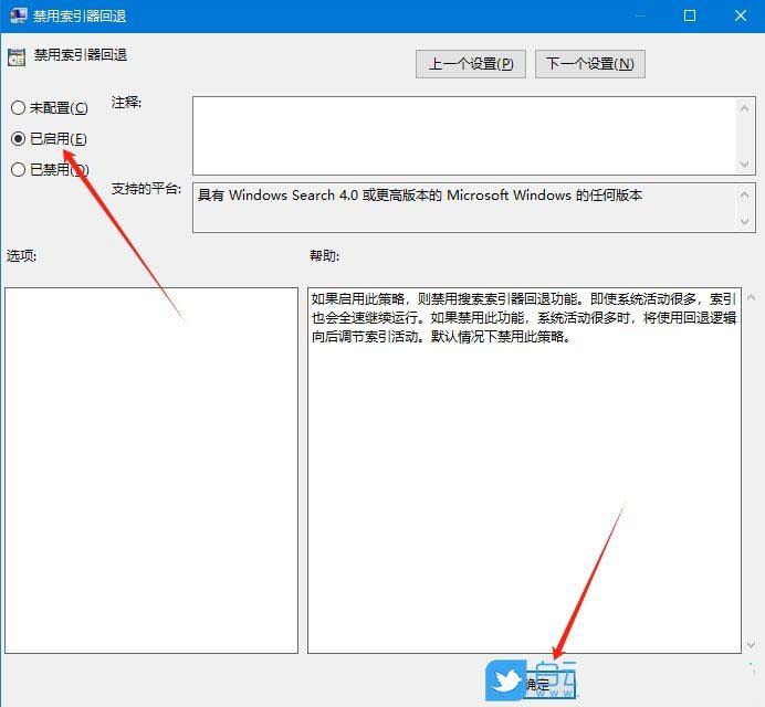 因为我们的目的就是要让索引器任何时候都全速运行,所以只需启动该策略即可。在上面修改为“已启用”,确定。
