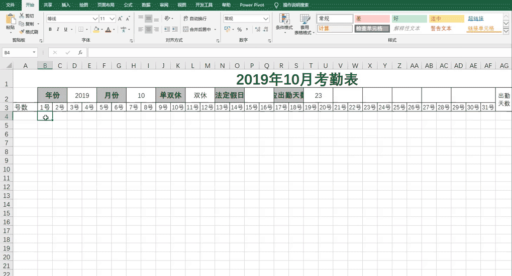 Excel考勤表根据休息日自动填充颜色,打造炫酷员工考勤表