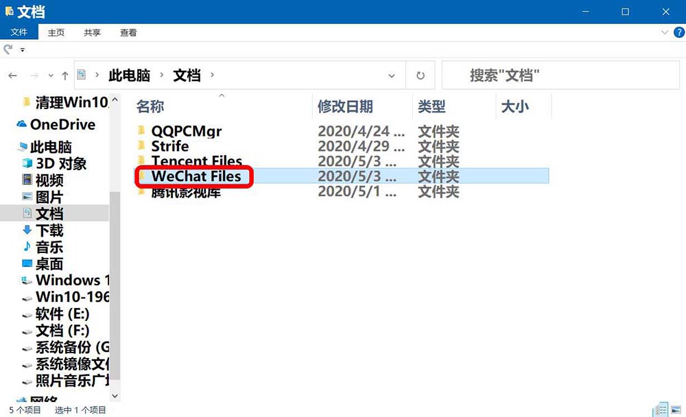2、在文档窗口中,我们点击:WeChat Files 文件夹;