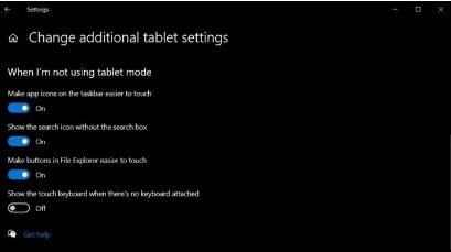 - 在 “当我不使用平板电脑模式时”下,关闭所有选项。