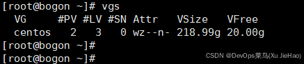 如上图所示,/dev/sda2 在system一栏中被标记为Linux LVM类型,他们的Id是8e。8e代表Linux LVM, 83代表Linux Native分区。确认为LVM之后,才能继续我们的扩容工作。