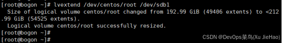 #报此信息说明已经成功的扩展了逻辑卷大小