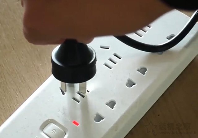 3、将电源线另一端插入电源,为电源供电,记得如果电源上有开关,将其开启,如下图所示。