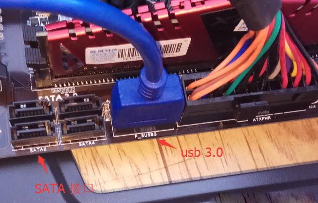 首先将USB3.0插入主板usb3.0接口,放心有防呆设计的,插反了插不进去的。