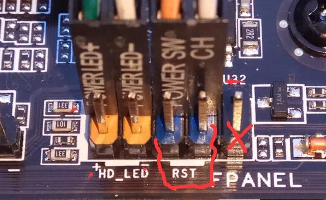 好了,下面开始插入开关机跳线,主板上面已有明确的标识,根据标识插入即可: