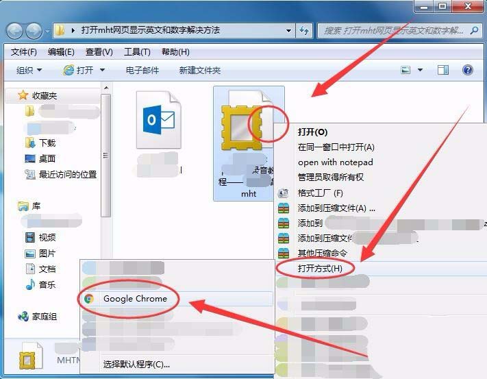 3、安装好浏览器后,在网页上右击,选择打开方式中的Google Chrome选项。