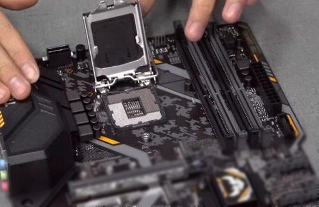 CPU与CPU插槽均有防呆缺口,如果CPU放置错误,是无法进行安装的,我们找到CPU的两边缺口对应主板的两边缺口,放入CPU,并完成安装。