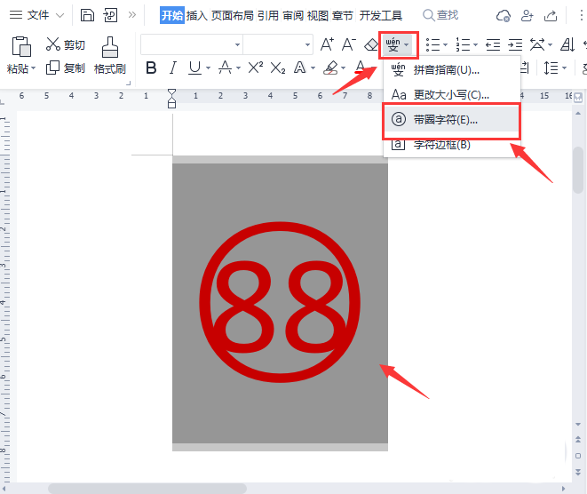 选中88的圆圈数字,在拼音里面找到【带圈字符】。