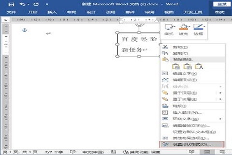 4、鼠标右键文本框打开右键菜单,点击“设置形状格式”;