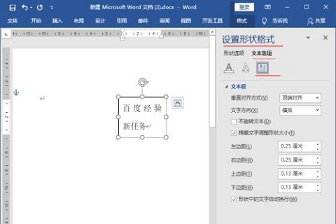 5、打开“设置形状格式”点击打开“文本选项”-“布局属性”;