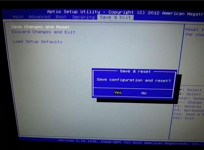 4、完成上述设置后,切换到“save & exit”选项卡下,继续按Enter键执行默认的“save changes and reset”保存,如下图所示: