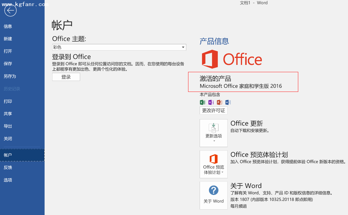 6. 至此您会发现,已经激活完成了。您可以点击“文件 > 帐户”,查看 Office 产品激活信息,在“激活的产品”下面哦~