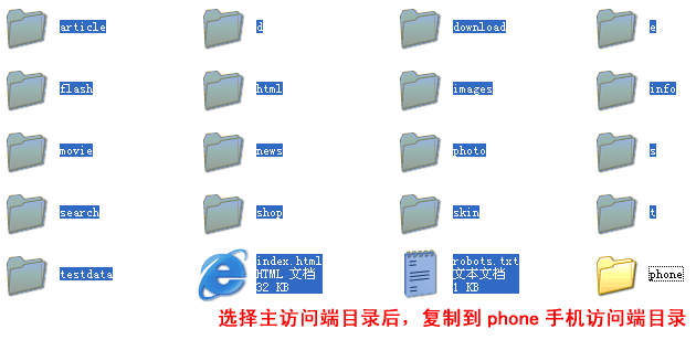 (二)、把主访问端目录复制一份到新建的访问端目录。比如:复制到上面我建的“phone”目录。