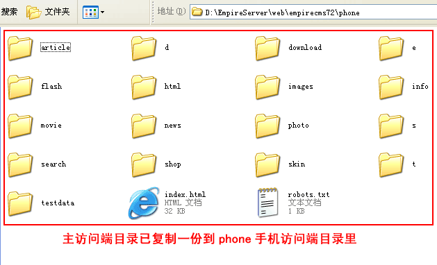 一般在主访问端下建个子目录就可以。比如:在帝国CMS根目录下建“phone”目录来做手机访问端目录。