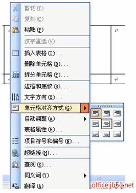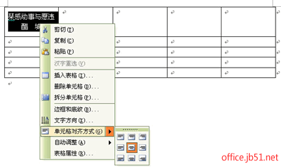 选中表格中的文字,单击“表格”菜单\表格属性\选择“单元格”小选项,选择你所需的对齐方式即可。居中对齐为中间的那个下面有文字的!