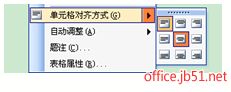 执行快捷菜单命令“单元格对齐方式”单击对齐方式列表中的第5个按钮