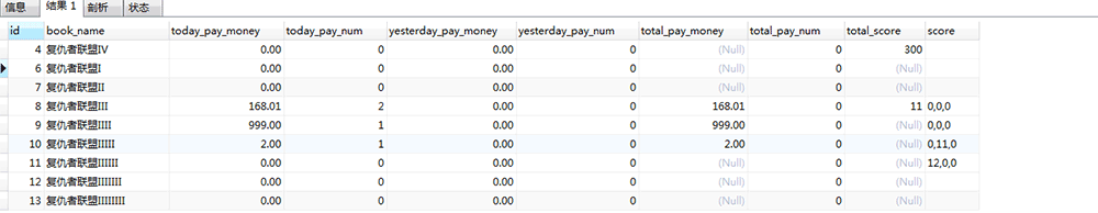统计每本书打赏金额,不同时间的充值数据统计,消费统计,