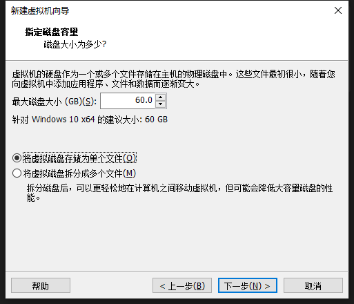 6、选择把虚拟磁盘存储为单个文件