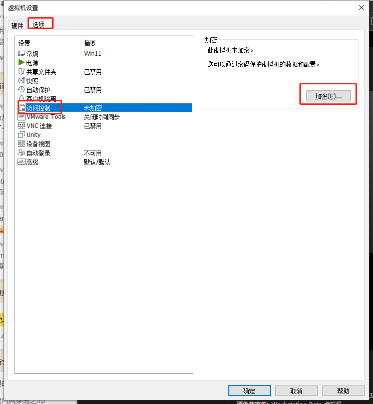 选项 —> 访问控制 —> 加密