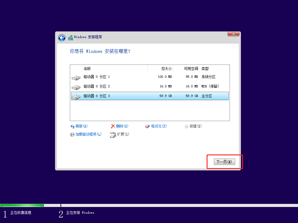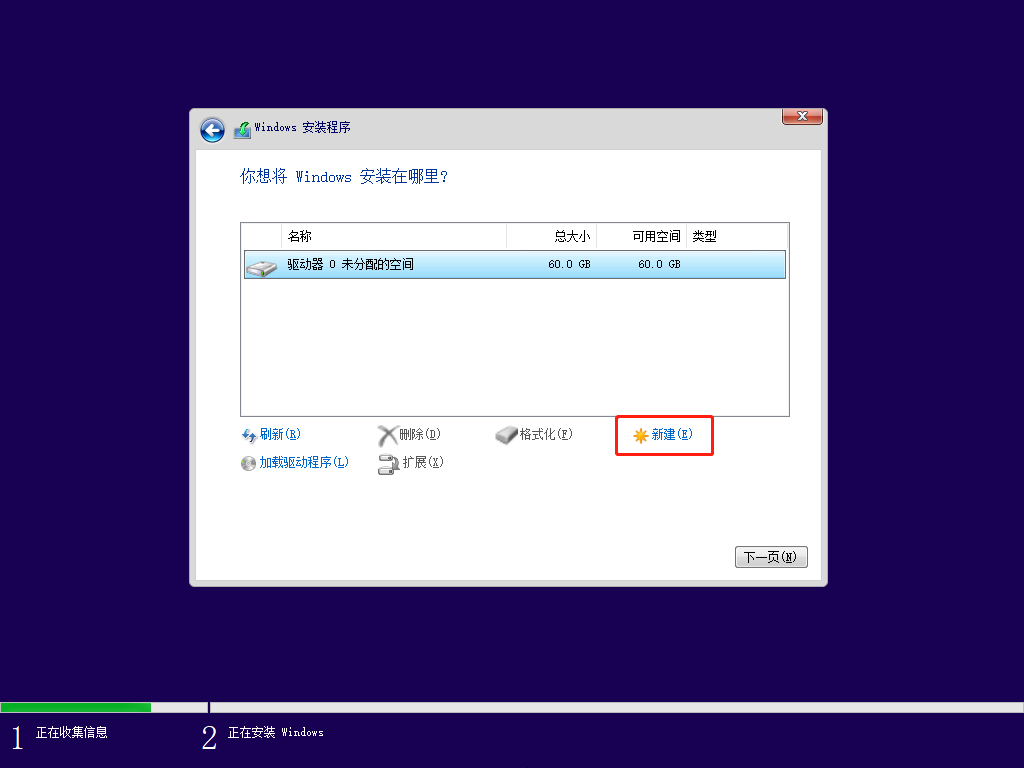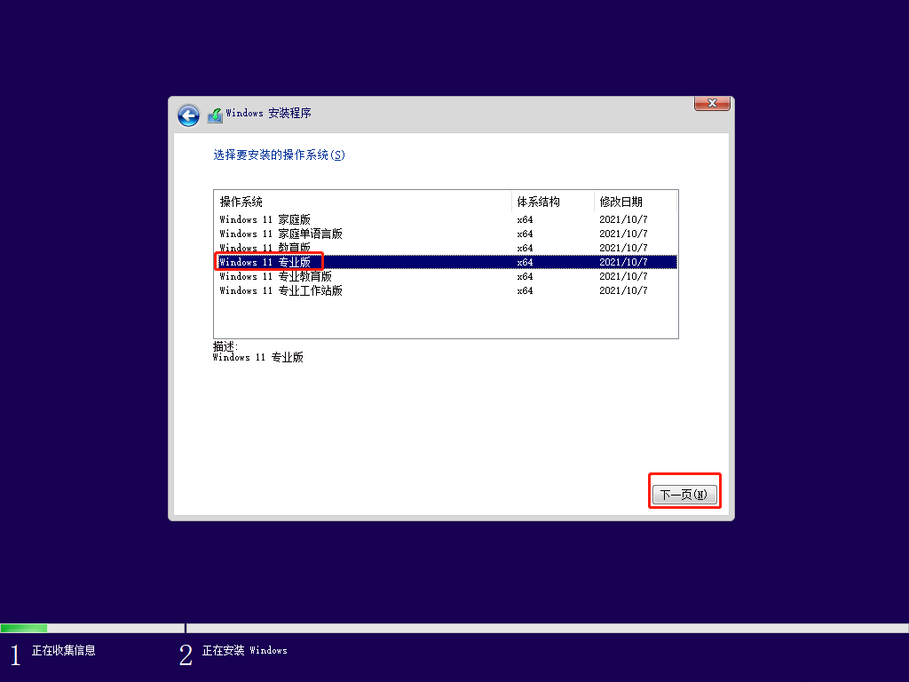 可能有很多小伙伴没有出现这个画面,别慌,等一等,因为我第二次安装的时候,就没有出现蓝色的选择项,直接进入 win11 的安装了。