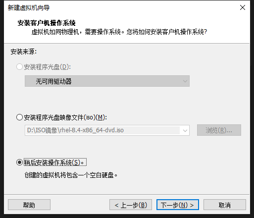 3、选择稍后安装操作系统