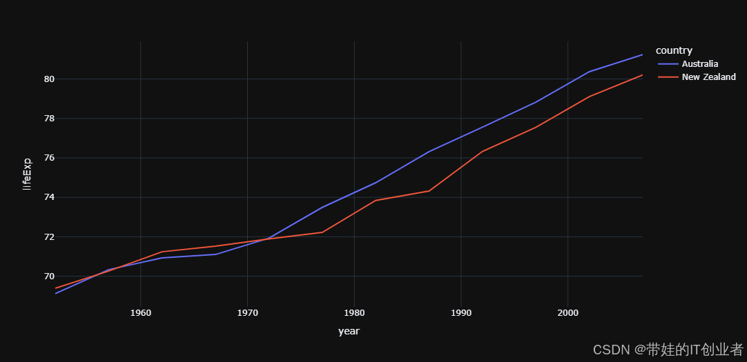 fig = px.line(df, x="year", y="lifeExp", color="country", template="plotly_dark")