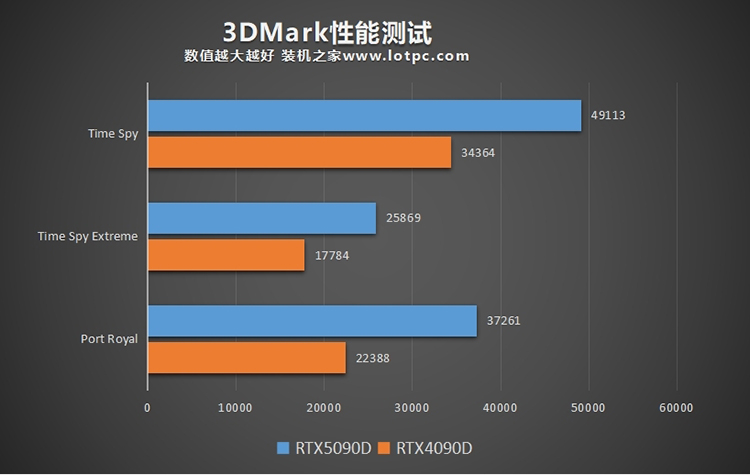 相信用户更关心这个话题,RTX5090D相比上一代RTX4090D性能提升有多大?下面我们再通过专业测试软件来了解一下。