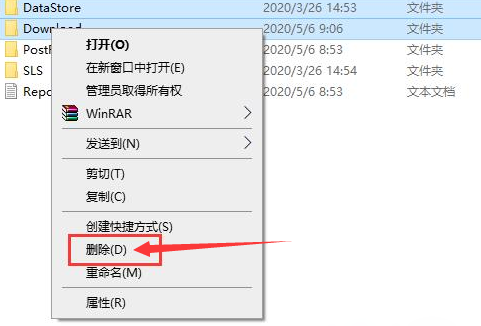 6. 选中该文件夹中“Datastore”与“Download”文件夹,然后右键点击这两个文件夹,在弹出菜单中选择“删除”菜单项,把这两个文件夹删除。