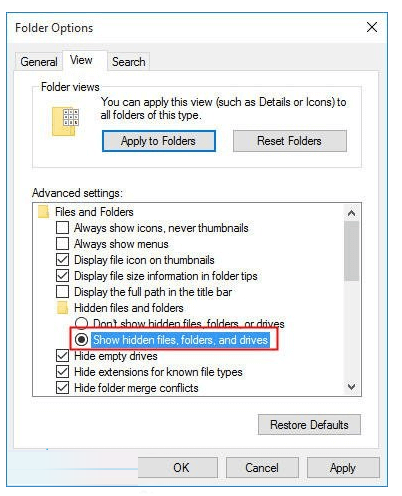 1. 依次打开“控制面板”>“文件 资源管理器选项”>单击“查看”选项卡>选中“显示隐藏的文件、文件夹和驱动器”前面的框。