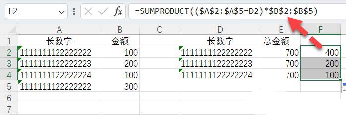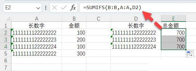 除此之外,当数字超过15位时,直接用SUMIFS也经常会出错,因为会将超出15位部分当成0处理。