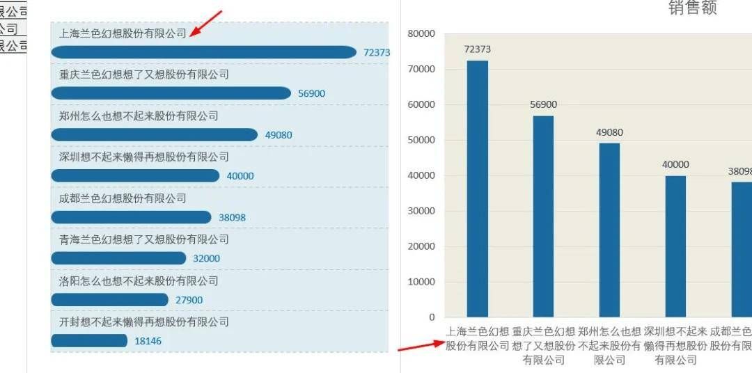 用长长的公司名称做图表是什么体验,就是好丑好丑,而且还显示不全。