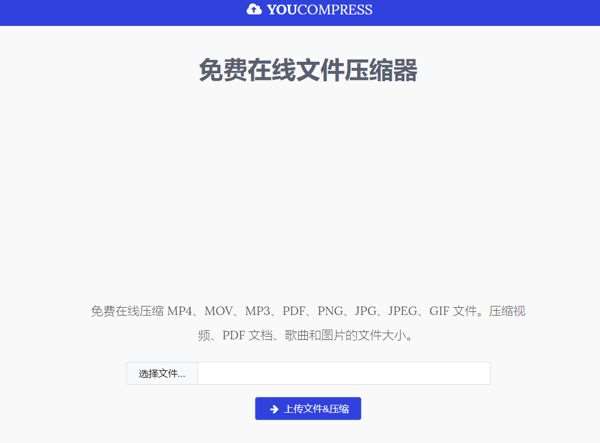 这是一个好用的在线文件压缩网站,可以用于压缩多种类型的文件,包括图片、文档、视频、音频等,压缩PPT也不是问题,打开之后咱们可以直接点击【选择文件】将PPT文件上传。