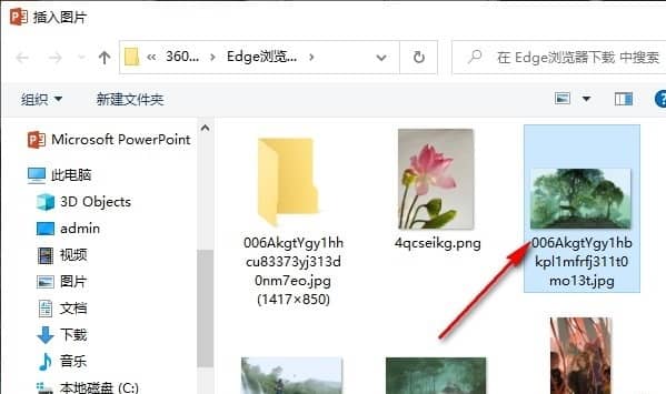 4、第四步,进入文件夹页面之后,我们在该页面中选择一张自己喜欢的图片,然后点击“插入”选项,将该图片设置为幻灯片背景