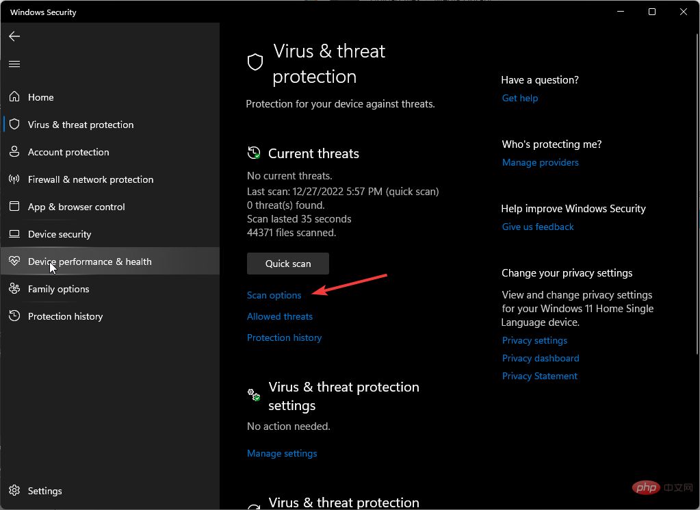 如果您没有发现任何威胁,请单击快速扫描下方的扫描选项继续执行完全扫描。