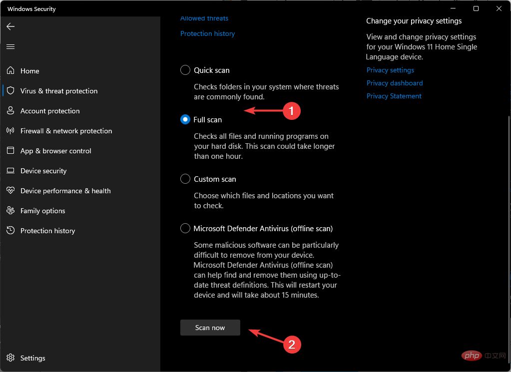 单击完全扫描,然后单击立即扫描以对您的 PC 执行深度扫描。