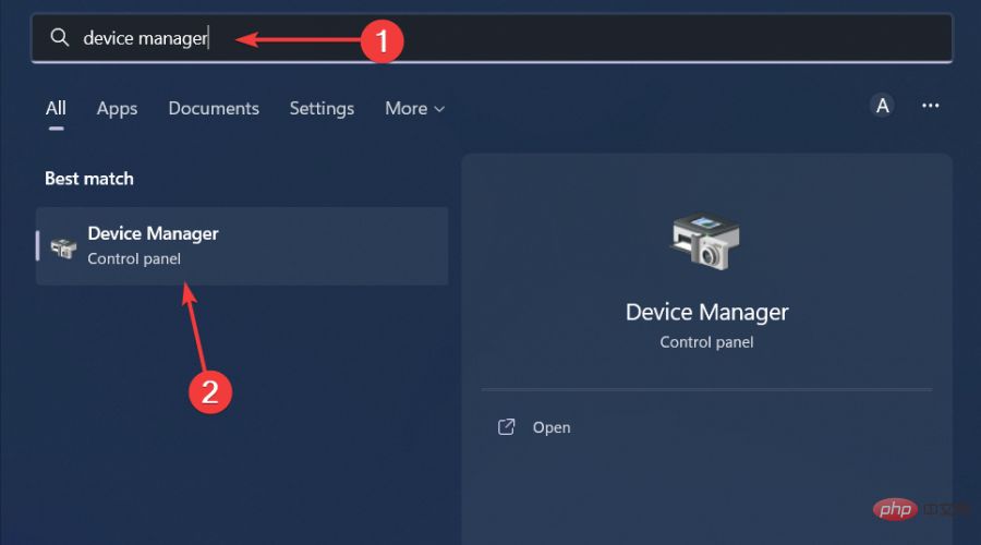 按键,在搜索栏中键入设备管理器,然后单击打开。Windows