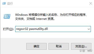 输入regsvr32 pasmutility.dll 并按回车键。