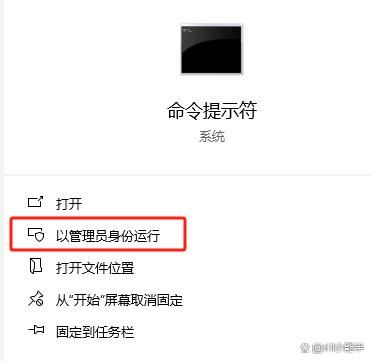 打开命令提示符(以管理员身份运行)。