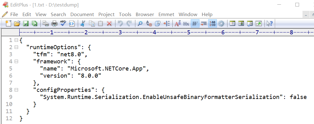 从上面的输出中果然看到了 runtimeconfig.json 中的内容,最后打开导出的文件,没毛病。