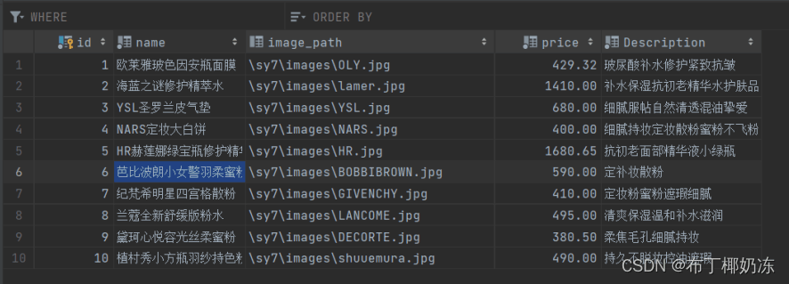 2. 数据库test存放的表格