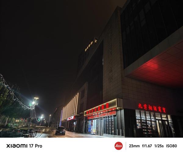 夜景下,主摄拍摄画面观感清晰,展现的内容信息量足,无肉眼可见的噪点。长焦若是些光亮的背景作为辅助,也能有非常好的图像质量。