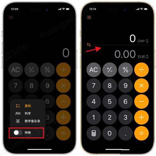 换算操作:点开计算器左下角的切换按钮,然后点击“转换”就可以开启功能,然后选择相应需要兑换的货币,系统会自动抓取汇率,进行换算。